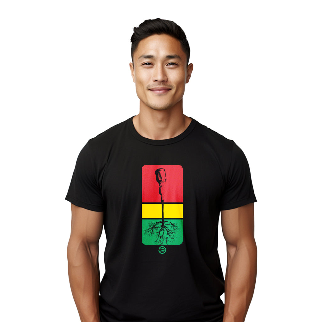 The design that started it all! The often imitated, but never duplicated Mic Roots tee is back! The Mic Roots t-shirt is a must-have for any music lover. The graphic includes a microphone surrounded by roots that symbolize the deep history and influence of music in our world. With its unique design and attention to detail, the Mic Roots t-shirt is sure to turn heads and start conversations.
